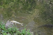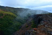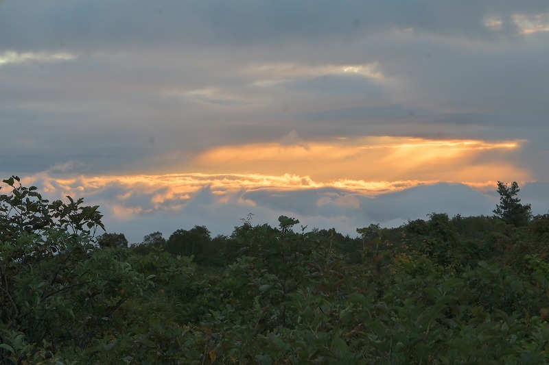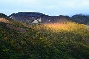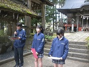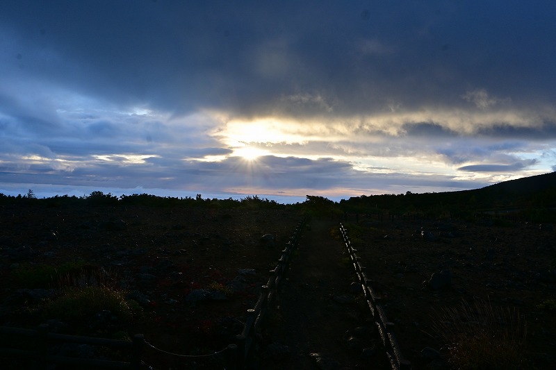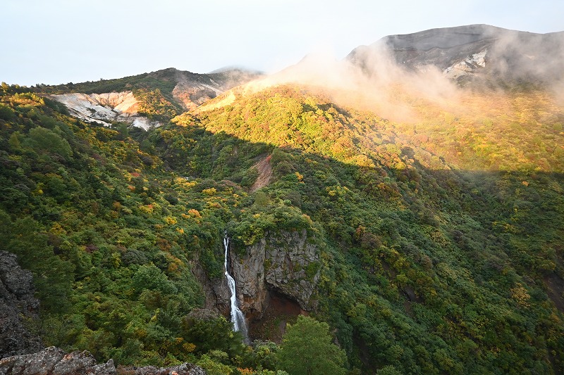 ご来迎見学ツアーと蔵王町カードツアー 2025年10月5日今日は大忙しでした。早朝、ご来迎見学ツアーのガイド、午前中に蔵王町カードツアーのガイドを頼まれ、午後は古道の会役員会と休む暇なく活動しました。 早朝のご来迎見学ツアーは、朝3時40分集合、4人のお客様を迎え、白衣裳を羽織り、刈田嶺神社里宮にご参拝しご祈祷。その後、刈田岳山頂駐車場までジャンボタクシーで登りました。対向車もなく料金所もスルーで予定より早く着きましたが、外は霧雨。車の中で5時過ぎまで待って、刈田岳へ登ります。西風に乗った霧雨が体を濡らします。山頂では薄明るくなりましたが、霧雨の中。何も見えません。奥宮にお参りし、崇高公命願の碑を拝み、少し早めに下山しました。せっかくのご来光と銘打っているので残念でしたが、コマクサ平で休憩。トイレに寄ると、東側が明るくなり、雲海が見下ろせます。雲の先が赤くなり、雲が切れました。 コマクサ平展望台に行くころ、東から日が差し、雲海の上に太陽が昇りました。五色岳の紅葉した山腹に日が当たります。不帰の滝周辺も紅葉し、なかなか見事なご来光を迎え、ほっとしました。車で下山後、遠刈田で解散。朝市をぶらぶらし家に戻りました。 9時前に、遠刈田公園へ。午前中は、古道の会の製鉄所跡草刈りと重なってしまいましたので、燃料を置いてきました。 その後ございんホールへ。蔵王町カードツアーの出発です。第3回となる今回は「信仰」がテーマで、呼ばれて蔵王古道を解説することになりました。まず向かったのが刈田嶺神社里宮。今日2度目です。宮司さんはおらず、本殿を開けていただき、敬明講図の実物を見ました。さすがに歴史の色をまとっていますが、看板より迫力があります。 刈田嶺神社の説明の後、澄川濁川合流点へ。濁川の方の岩石は、薄く何かが付着しています。火山に由来する成分です。澄川の方は石はきれいです。これだけ見ても違いが判ります。合流点を見学した後、取水塔近くで、この水の行方を解説。大正期に作られたトンネルを通り、秋山沢川へ。その後トンネルを通り、遠刈田発電所へ行き、発電します。この発電量は遠刈田地区をまかなう量だそうです。その後、曲竹発電所に送るものと、松川の底をサイフォンを使い、反対側の疣岩分水工を経て、澄川用水・黒沢尻用水となり700ha以上の耕地を潤します。これらが100年以上動いているのです。 次は蔵王の名物リンゴ「蔵王はるか」のシャーベットをいただき、東急別荘地にある、澄川の崖を見学。ここはちょうど七日原の扇状地を澄川が侵食した位置にあり、扇状地の断面が見える崖です。 さらに、冷泉堂。古道にある水源です。現在も遠刈田の水道に使われています。ここでも、地質に起因する湧水とそれが御山詣りに使われたことを話しました。 最後に向かったのが、カナガラ仏。カナガラの意味とこの場所の歴史的役割。女人禁制の最終地であったこと。仙台二中の遭難、賽ノ磧の入口でこの先三途の川・不帰の滝という死後の世界の始まりと、山頂・浄土平での復活という蔵王御山詣りの信仰「生まれ変わり」について話しました。 なかなか行けない場所を廻ったツアーでしたが。面白いツアーコースでした。
