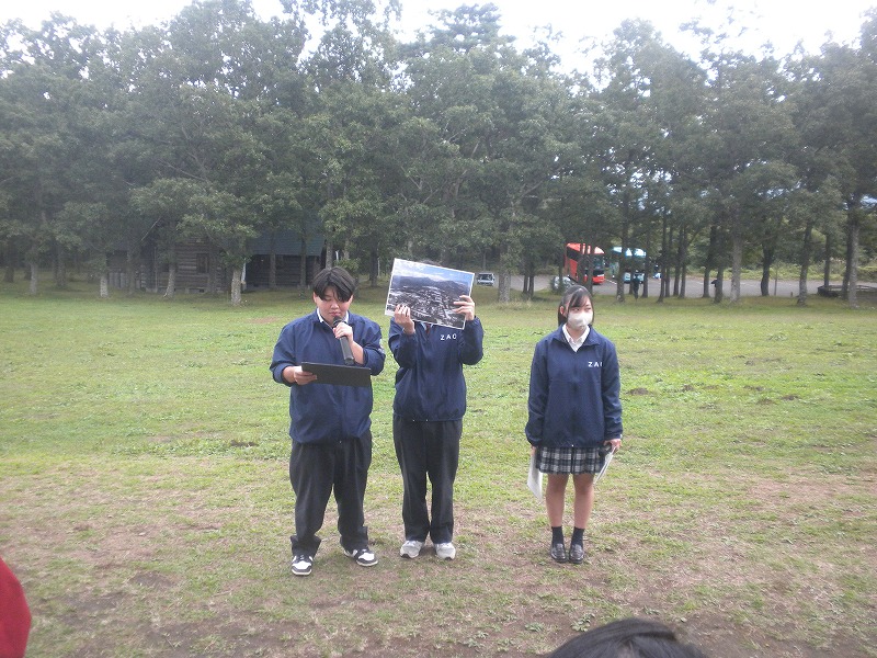 高校生のジオツアー 2025年10月4日今日は、蔵王高校の高校生によるジオツアーが行われ、参加してきました。これでこの行事にかかわるのは3年目でしたが、着実にステップアップしているように感じました。 今年のツアーは、定員25名。エコーラインをコマクサ平、刈田岳と登り、遠刈田温泉で刈田嶺神社にお参り、昼食休憩。その後七日原に行き、チーズ作りというように、内容もブラッシュアップされて、参加者を楽ませるものになっていました。 紅葉が始まり、エコーラインは、大黒天を越えたところで紅葉が盛りでした。幸い天候にも恵まれ、コマクサ平での発表を終え、山頂へ。エコーラインの料金所の渋滞もなく、時間通り山頂に着けました。 風もなく穏やかな天気。時折り御釜が姿を見せました。山頂では、御釜についてや奥宮と御山詣り、蔵王火山と人々の暮らしについての説明がありました。 ほぼ時間通り遠刈田温泉に下り、刈田嶺神社での説明の後、昼食休憩。この日の遠刈田温泉は、食事を取るいろいろなところが満員でした。秋の観光シーズンの始まりです。 午後、七日原のハートランドでチーズつくり。牛乳と酢で作るナチュラルチーズでしたが、あっけないほど簡単にできました。これまでヨーロッパの山を歩いて、山中にある夏の放牧場で、チーズを作っている場面に何度も出合いましたが、チーズは山の中で大掛かりな装置がなくてもできるものだと実感しました。 その後ございんホールに戻り終了。高校生たちの成長を感じた、なかなかいい一日となりました。