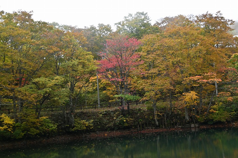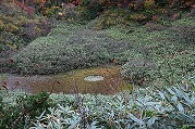 山形蔵王中央高原の紅葉 2025年10月14日本日のかよう会は、山形蔵王へ遠征。エコーライン経由で、蔵王中央ロープウェーで鳥兜駅へ。ちょうど10人いたので、団体割引で、往復2200円でした。 鳥兜駅から下り、ドッコ沼へ向かいます。紅葉の真っ盛り。沼を半周。水面に映る紅葉に歓声。 そこから、片貝沼を目指します。紅葉の自動車道路を登り、山道に入り、五郎岳へ。三角点のある五郎岳山頂で休憩。三等三角点です。 分岐点に戻り、うつぼ沼を経て片貝沼へ。道中見事な紅葉に浸りながら、11時半に片貝沼に到着。昼食です。 そののち、紅葉峠を経て、鳥兜駅に戻り、12:40の下り便で下山。雨にも会わず、紅葉の道を歩いた一日でした。惜しむらくは、陽ざしがなかったことでした。 下山後、笹谷トンネル経由で遠刈田に戻りました。