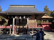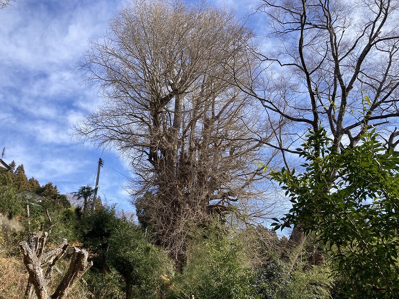 柴田フットパス こだわり街道 2025年12月23日今日のかよう会は、柴田町のフットパス、こだわり街道ルートでした。 例年なら11月末の、大イチョウが黄葉し、柚子が取り立てのころ行っていたのですが、今年はこの周辺でもクマの目撃があり、行けませんでした。今日は安全なルートで歩くことになりました。 柴田町農村環境改善センターがスタート。いい天気で、柴田町の最高峰・愛宕山が見えています。ここから、まず圓龍寺まで。この寺は文禄2年(1593年)創立、樅の木は残ったに登場する原田甲斐の菩提寺、という名刹。ここの山門脇には立派なサルスベリの木があります。脇のお堂には薬師如来と12神将像。 裏山を登り、下ると八坂神社。こちらは源義経の家来の命で建てられた由緒あるものだそうです。立派な鉄の灯篭があります。参道を降りると、変わったササが見えますが、これはオカメザサだそうです。鳥居脇に灯篭がありますがこの台座には、亀趺という神獣があります。道路に出ると新しい神殿。 さらに進むと、「こだわり街道」といういろいろなものを集めた施設。「ナニコレ珍百景」というテレビ番組で紹介されたとか。 ここから雨乞のイチョウまで、これまでは山道を行ったが。今回は生活道路を、ということで舗装道路を登っていきました。 このイチョウは天然記念物にもなっている幹囲11m、高さ31mという大イチョウ。例年だと葉が黄葉して輝く時期に行ったのだが、今年は葉は落ちていました。ここで昼食。ミネステローネを作って食べました。名物の柚子胡椒とユズを購入。 その後下山ですが、この日は、モノを運搬する係に回り、一足先に車で下山。センターにある伊達政宗像を見てきました。 好天に恵まれた、初冬の一日でした。どれにしても、クマの影響が広範囲にわたっていることの驚かされます。この先どうなるのか。