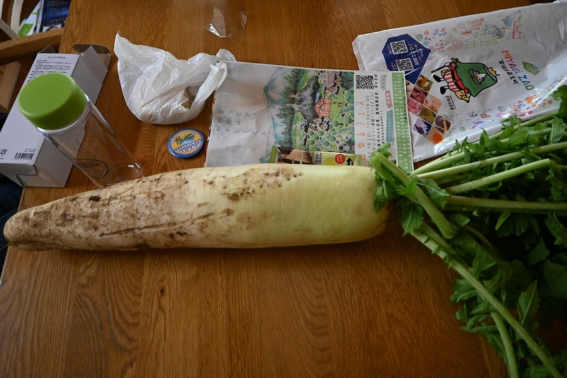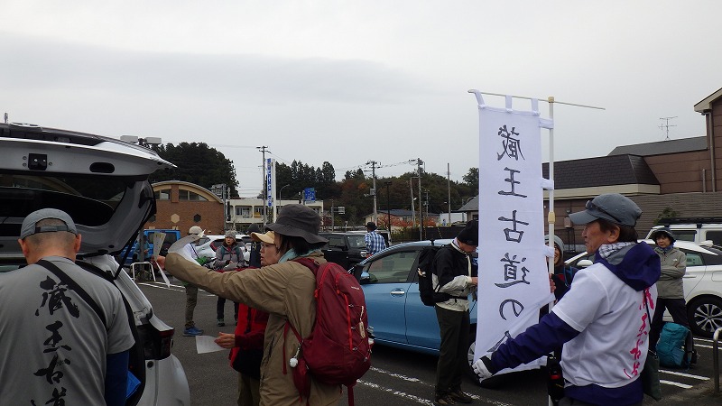 遠刈田温泉オルレのプレイベント 2025年11月1日今月半ばにオープンする。宮城オルレ蔵王遠刈田温泉コースのプレイベントが行われました。 コースのごみ拾い、と銘打った公募100人のイベントです。エントリーして行ってみると50名くらいの参加者。オルレコースを歩きます。本日、暴風警報が出ているというので、一部カットのコースめぐりです。 遠刈田の歩き始めは、コース全体が見えます。今日は、昨日の雨のため、地蔵滝が見えていました。稜線は雲に覆われています。 コースに置かれたリボンや矢印に沿って、遠刈田温泉街からこけし橋を渡り、こけし館へ。しばし休憩の後、七日原へ。惟高親王神社に参拝して、七日原へ。ちょうど大根祭りでしたので、大根畑には観光客。途中カットしハートランドへは寄らず、チーズ工場のゴールへ。ここでしばしの休憩の後、国道を出発点に戻りました。 参加賞として、缶バッジ・クリアボトル・パンフレット・そして大きな大根1本をいただきました。