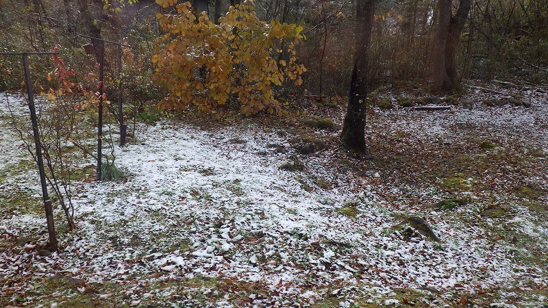 初雪 2025年11月19日朝起きると、庭が真っ白。初雪です。いよいよ古将軍の到来です。 昼頃にはとけてなくなりましたが・・・。