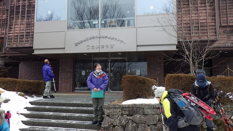 雪の蔵王をスノーシューで体験するという企画でしたが、野鳥の森はあいにく積雪が乏しく、何とか雪の上を歩いたというツアーになりましたが、ガイドさんの沢山の解説で、何とか無事にツアーを終えることができました。
