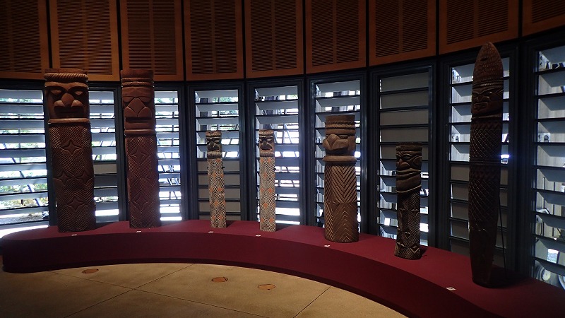 センターの建物に入る前に、カナックの道というのを歩きました。ここはカナックの国づくりの物語で、最初の人テアカナケの誕生から死、再生までの「神話」の物語です。民族固有の神話が述べられて興味深い。また、熱帯雨林・マングローブなどの中を歩きます。