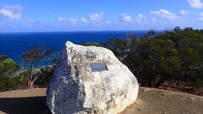 その後、シトロン湾からアインバタ湾と海辺を通り、ウエントロ展望台のある丘に登りました。標高130mですが、正味0mの海から登ります。最後の方は結構急な道を上りてっぺんにつきました。道路がきていて車が何台も止まっていました。大砲が2門置かれ、ここが要塞であったとのこと。見晴らしは最高です。ぐるりと海が見えます。登山路はいくつも作られているようです。しばらく景色を眺め、下りました。途中、展望地があるのでそこでも一休み。
