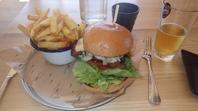 波止場に戻り少し遅い昼食です。夕食が貧しい分、昼食は少し豪華に。今日は、チーズバーガーとビールです。ビーフが歯ごたえがあり、とてもおいしい。