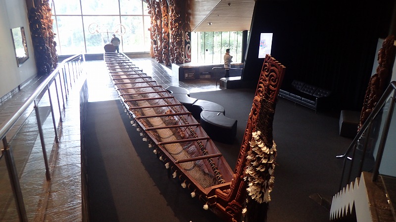 案内所の位置が博物館脇に変わっていましたから、博物館に行きました。マオリのつくったものが展示されていました。特に圧巻は船。20m以上の船がありました。装飾付きです。またいろいろな像がありました。