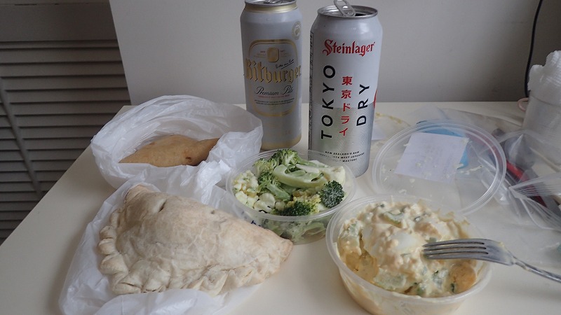 帰りもリバーウォークを通り戻りました。町のはずれに大きなスーパーがあるとのことで、行きました。こちらに来て初めてです。ビールとワインを買って、総菜売り場に行くとサラダを売っていました。このところ野菜を食べていないので、今日はここでサラダとビーフパイを買って夕食にします。マヌカハニーというのも売っていましたが、これは荷物になるので、帰国直前に購入します。