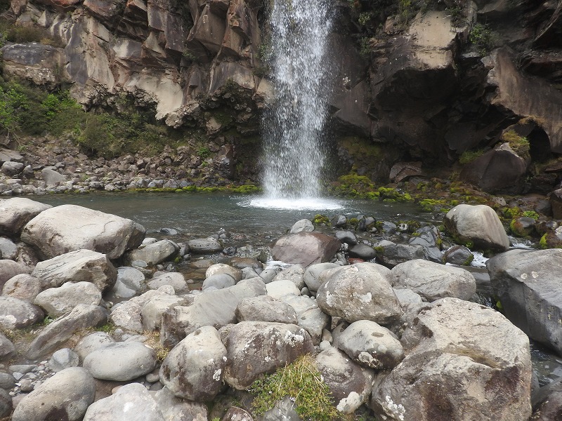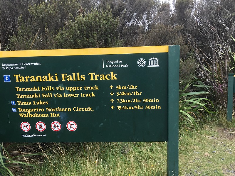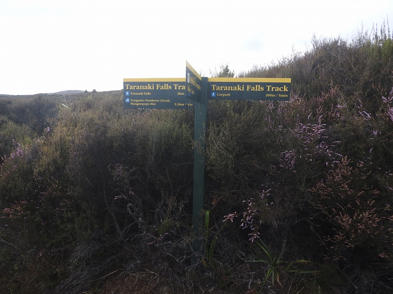 朝、この準備をはじめましたが、1時まではすることがありません。朝降っていた雨も上がったようなので、往復2時間のタラナキ・フォールを見てきました。周回の道があり、よく整備されていました。滝は水量がいまいちですが、大雨の後などは大きな滝になると思われます。また、行く道も、樹林の中や草原の中を行く変化のあるもので、手ごろなハイキングコースでした。このコースは、トンガリロ・ノーザン・サーキットの一部なのです。