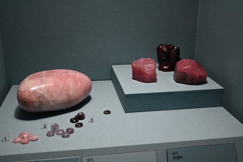 建物は、中国の宮殿を模したもののようです。入園料一人350元、日本円で1750円くらい。それでも、中国の至宝が満載のこの博物館に入場する価値のがありそうです。 最初に見たのは3階の302.残念なことに肉形石と翠玉白菜は展示されていませんでしたが、小型の白菜は見ることができました。玉を組み合わせてこのような工作物を作ったのはなぜ?と言わんばかりの美しさです。