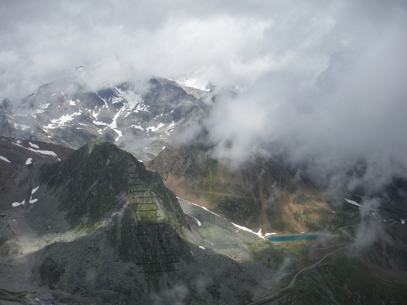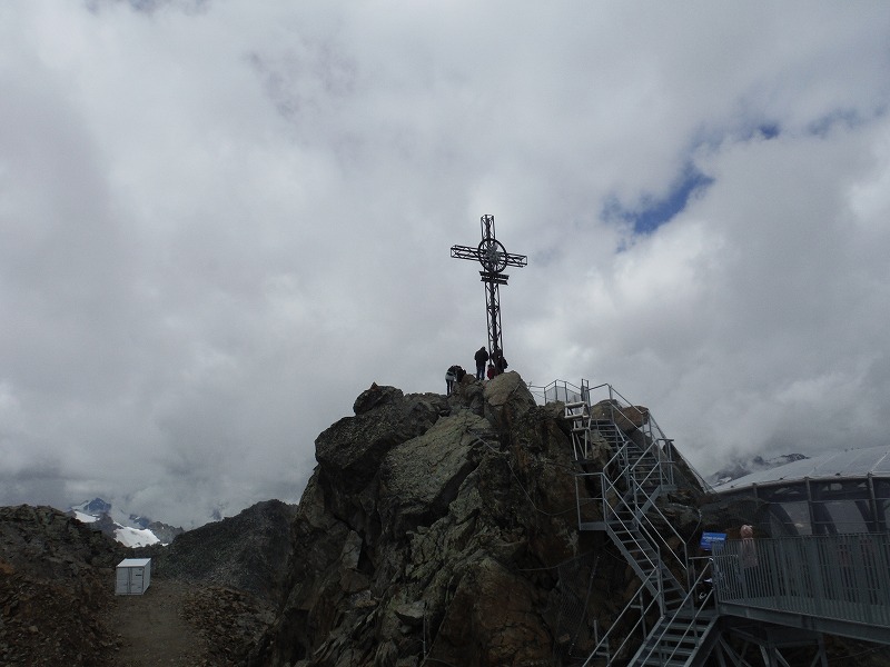 セルデンは、エッツタールのちょうど真ん中あたりにあるリゾート地。ここでは、一日は天気が良くなかったので、半日休み、午後からは、ガイスラッハコーゲルバーンに乗って、3056mのガイスラッハコーゲル(Gaislachkogel)の頂上へ。下は曇っていたが、ロープウェーで上に行くと、雲を突き抜けていた。ここからはエッツタールアルプスの山々と、谷底の町が見える。
