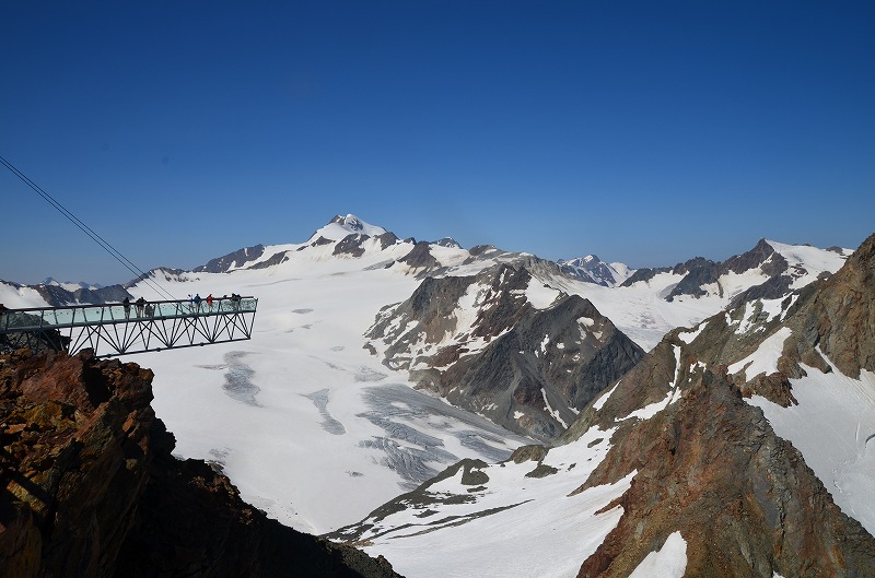 もう一日は、バスで、ティエーフェンバッハ(Tiefenbach)へ。ここは標高が2700mもある山の中。ここからゴンドラで、ティエーフェンバッハコーゲル3234mに行く。ここは氷河の真ん中で、冬はスキー場になっている。まわりは、3000m級の山に囲まれたピーク。